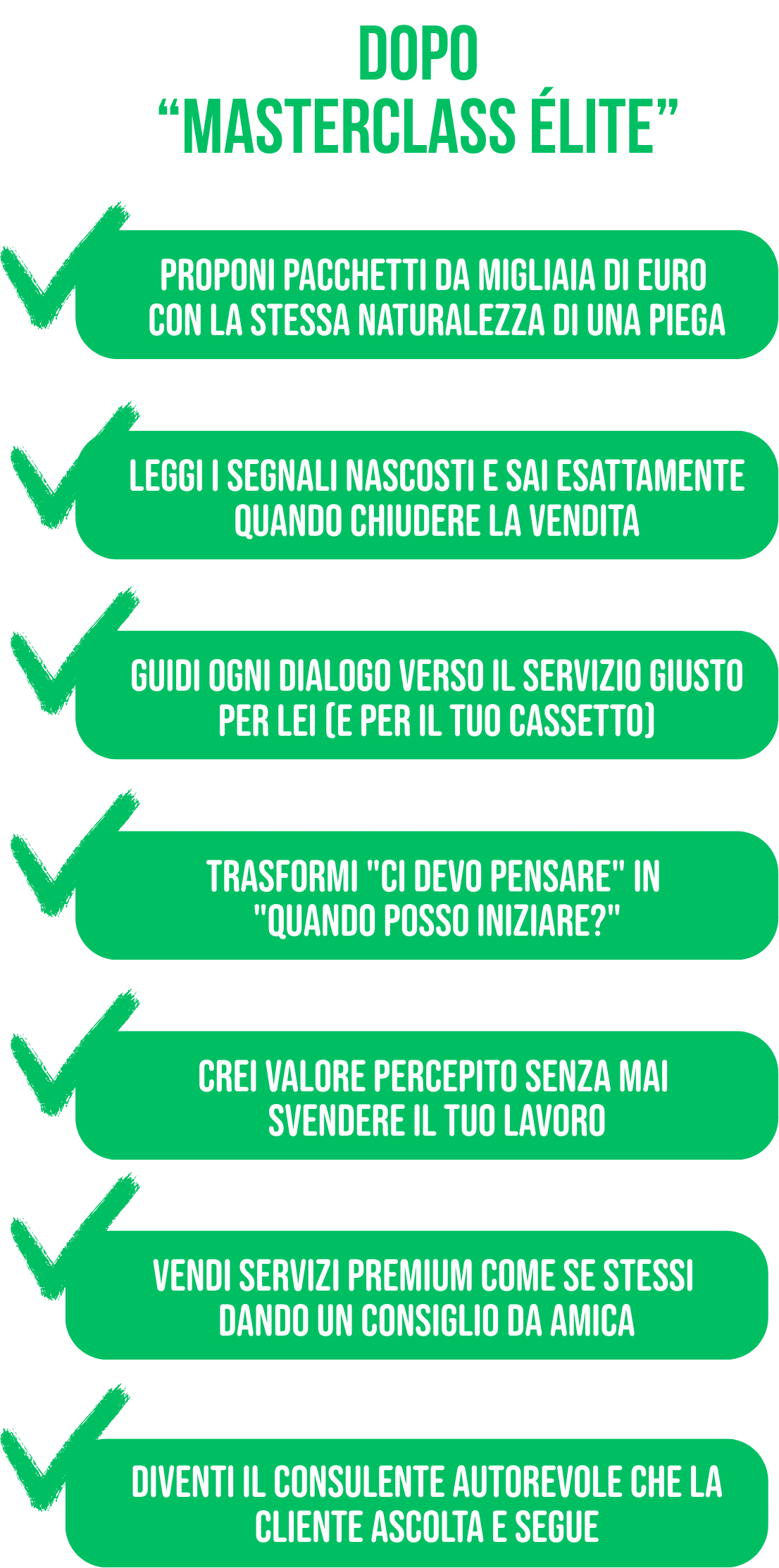 Dopo questo evento riservato, saprai trasformare ogni “Non sono sicura”, “È troppo caro”, “Ci devo pensare” in “Va bene, quando cominciamo?”