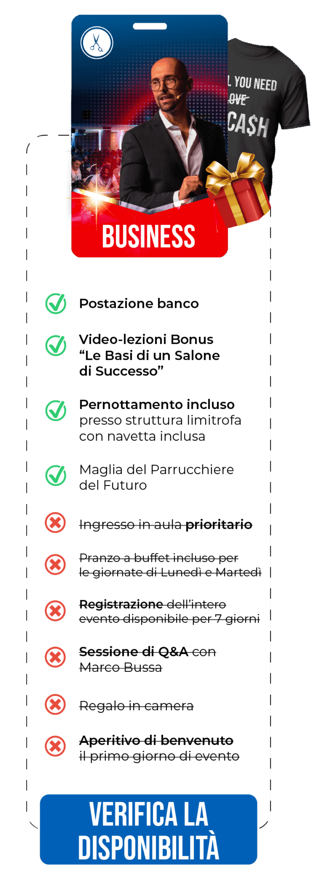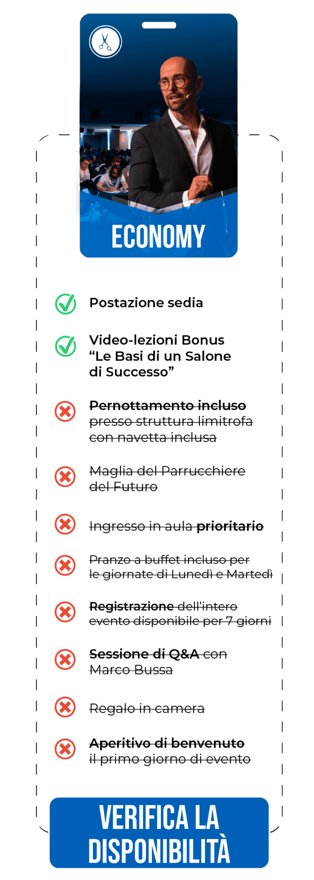 Se al termine della prima giornata, l'evento non avrà superato le tue aspettative, potrai richiedere il rimborso totale del biglietto che hai acquistato. Il mio staff ti rimborserà fino all’ultimo centesimo senza chiedere spiegazioni.